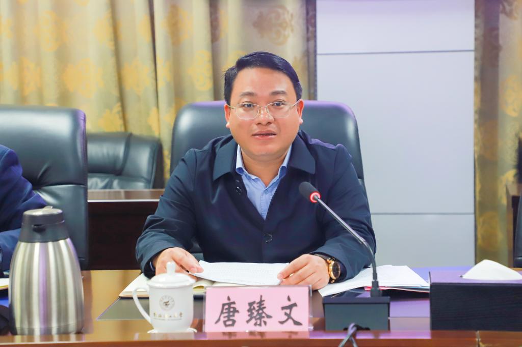 邓军代表学校致辞,对唐臻文处长一行莅临学校调研指导表示热烈欢迎,向长期以来关心、支持学校统战工作的自治区党委统战部、桂林市委统战部表示衷心感谢,并简要介绍了学校总体概况、办学定位、办学特色等。邓军表示,统战工作是学校党委一项十分重要的工作,党外知识分子工作是统一战线的基础性、战略性工作。学校党委以党的二十大精神为指引,按照自治区党委要求,重实效、强实干、抓落实、求突破,推动学校统战工作高质量发展。