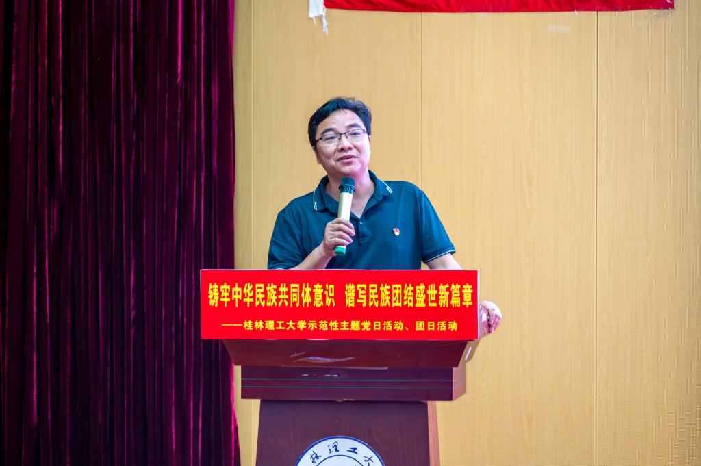 为进一步深入学习习近平总书记关于民族团结进步的重要论述,提升民族文化自信,着力构建党建引领下的团建工作机制,共同熔铸坚实的民族团结意识。2024年4月25日晚,公共管理学院在雁山校区图书馆报告厅举办了“铸牢中华民族共同体意识,谱写民族团结盛世新篇章”示范性党日、团日活动。学院党委书记陆平、党委副书记夏勇超出席活动。
