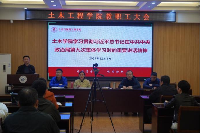 12月8日,土木工程学院在屏风校区04203-204会议室举行全体教职工理论学习会议,深入学习贯彻习近平总书记在中共中央政治局第九次集体学习时的重要讲话精神。会议由学院党委书记曾榕主持,学院领导班子及全体教职员工参加会议。